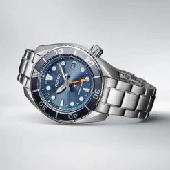 Seiko Prospex introduces its first solar watch with a GMT hand. The watch shape is affectionately named ‘Sumo’ by Seiko fans because of its size and shape and the 12 o’clock marker – it’s a substantially strong looking timepiece. The 45 x 13mm stainless steel case houses an aqua coloured dial with vibrant accents to the elegantly pressed pattern design. The Lumibrite colour on the 24-hour hand is high in visibility underwater and the watch is 200m water resistant. Prospex is a combination of the words ‘Professional’ and ‘Specifications.’ Seiko Prospex timepieces are designed to be practical, reliable and durable; to meet the high standards required in extreme environments for sports lovers and adventure seekers alike. Since launching Japan’s first diver’s watch in 1965, Seiko’s innovative watchmaking has changed global dive watch standards.