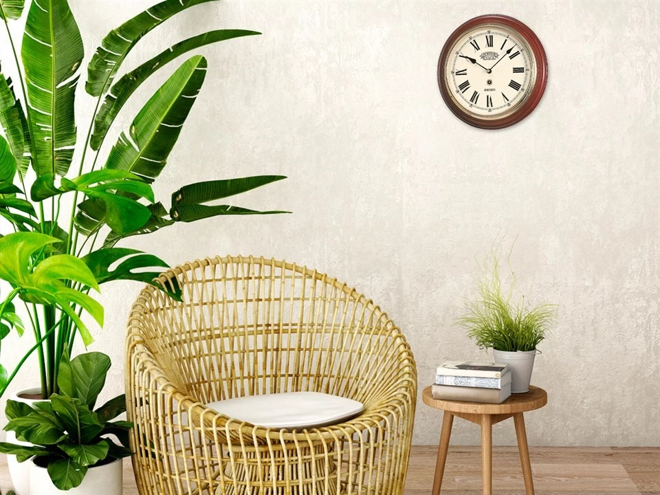 A classic styled station wall clock in a rich, piano finish. Approximate diameter 31cm. Quartz movement, 1x AA battery included.