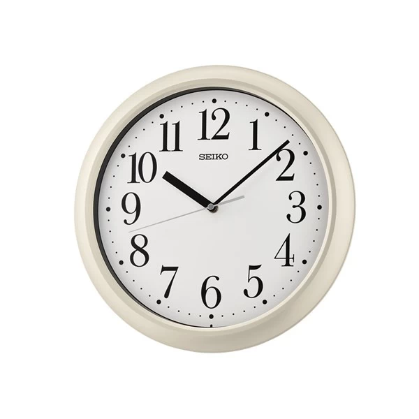 A classic Seiko wall clock measuring 32.5cm in diameter. Also featuring a cream plastic case and clear and easy to read black numerals and hands, quartz movement.