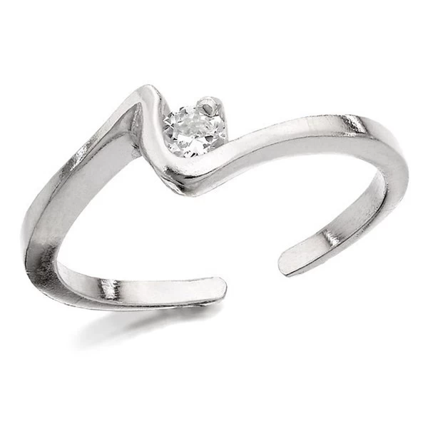 A white cubic zirconia sits within a swirl of sterling silver to create this pretty grip-to-fit toe ring.