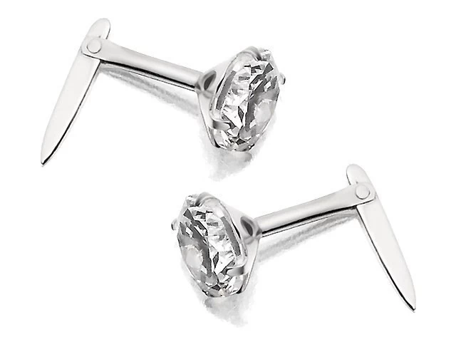 A solitary 5mm (approx) brilliant cut cubic zirconia set onto sterling silver Andralok swivel fittings. Made in the UK.
