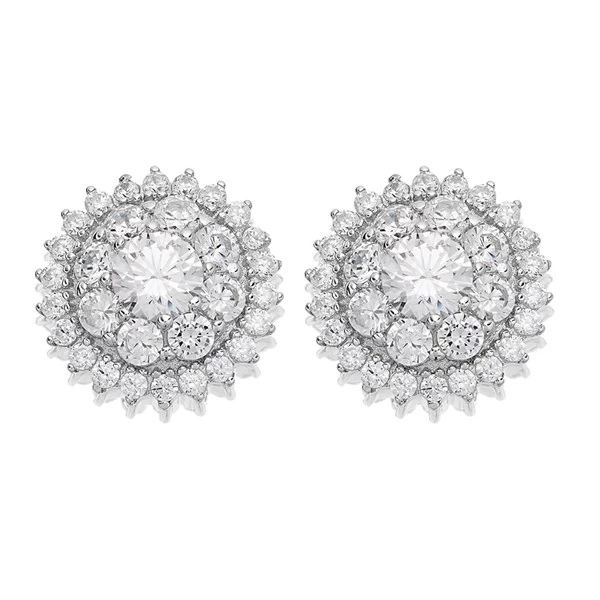 Silver Cubic Zirconia Cluster Stud Earrings – 10mm – F04016