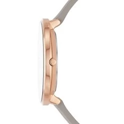 With a 38mm, over-sized rose gold plated steel case matching a slim, sand cooloured eco leather strap, this Skagen Gitte watch is the perfect accessory for day or night. 30m water resistant.