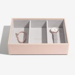 There’ll be no excuse for your favourite jewellery to be anything other than tangle-free and organised! This bestselling Stackers Blush Classic Jewellery Box is ideal for almost every jewellery collection, with plenty of space to keep your necklaces, rings, earrings, watches and more, all beautifully organised and safe. Whatsmore you can easily add another jewellery box layer as your collection grows. The classic set is the ideal starting point and includes the Jewellery Box Lid, the Trinket Layer and the Watch/Accessories layer – don’t forget you can tailor your jewellery box even further with new layers and accessories. Measures 18 x 25 x 13.7cm.