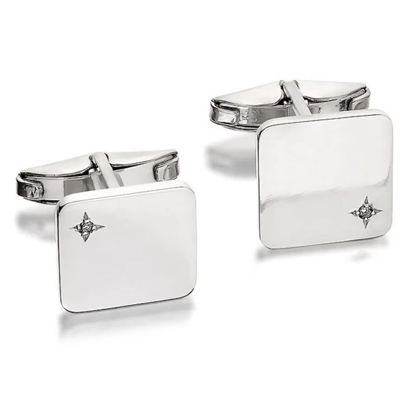 The square, 1.3cm face of these silver swivel cufflinks is set with a star set diamond accent – simple and very wearable.