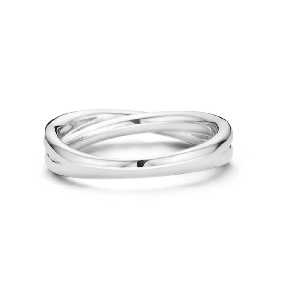 This classy TI SENTO – Milano ring looks like two bands joined together. Made from premium sterling silver with a rhodium coating for extra shine, there is a single row of brilliant-cut cubic zirconia stones set on one of the bands. This timeless design works perfectly with other TI SENTO jewellery. 4mm wide.