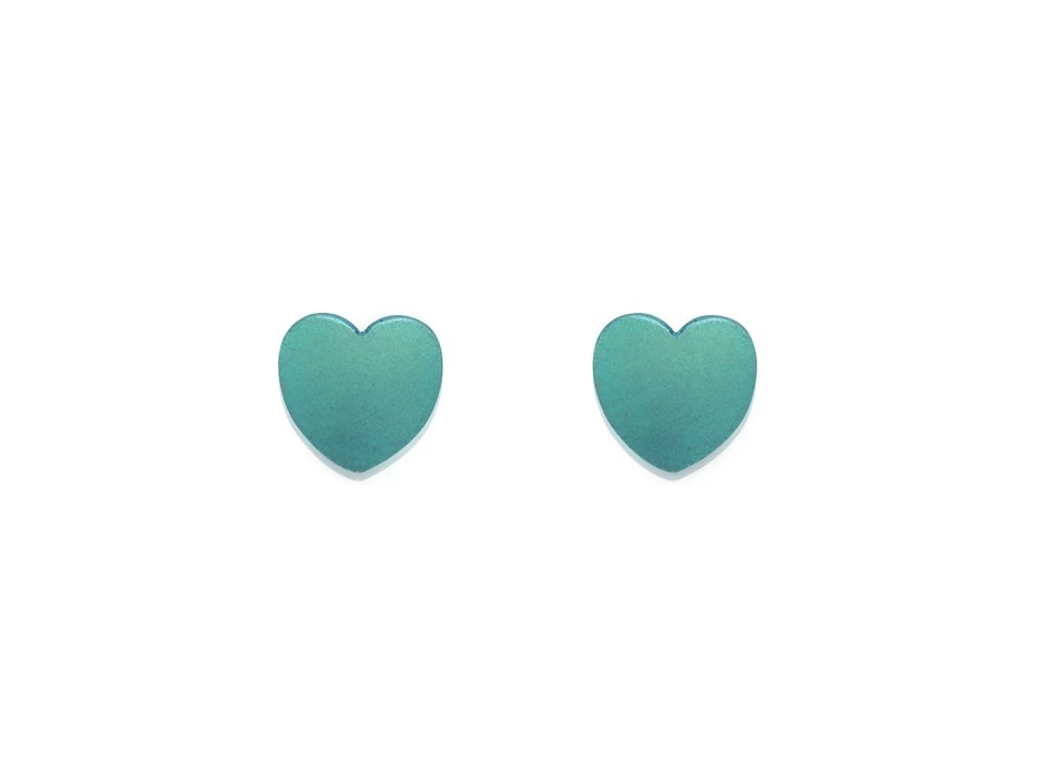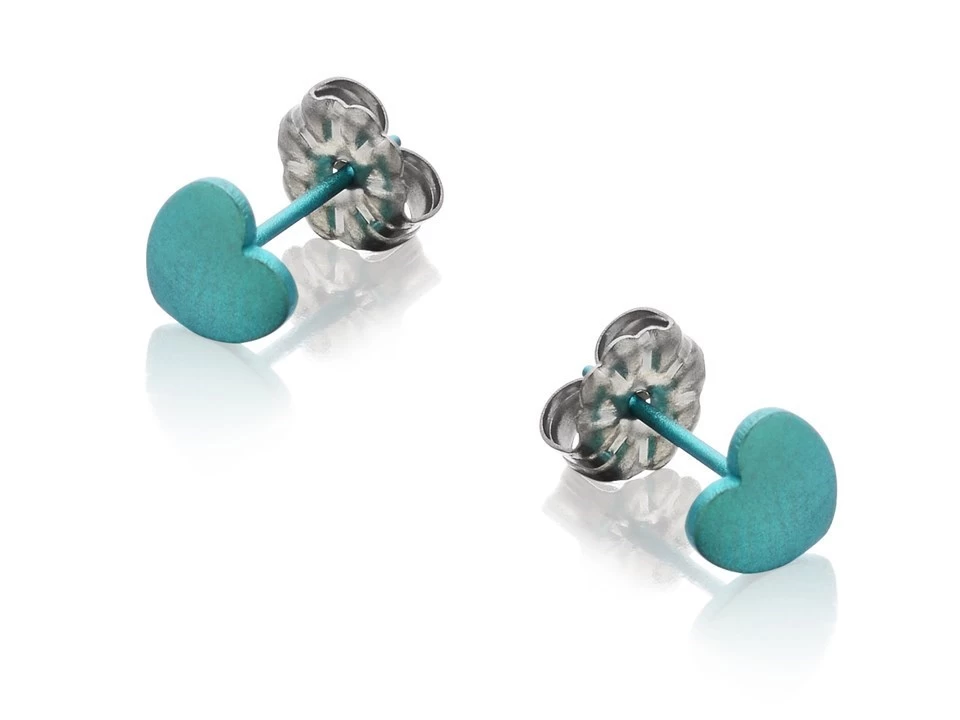 A very cute pair of 5mm heart titanium stud earrings, exceptionally lightweight and hypoallergenic, these boast a lovely green finish. From the Ti2 coloured titanium jewellery collection, made in the UK.
