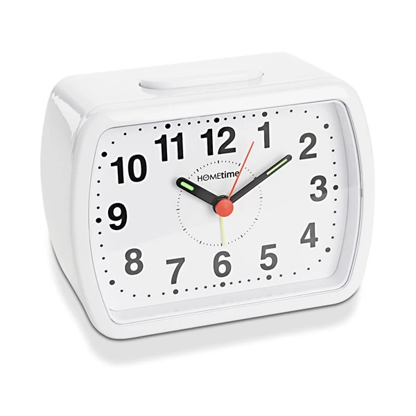Black, easy to read hour numerals, plus luminous hour and minute hands make this 12 x 9 x 7cm white case alarm clock easy to see, with a red second hand and a yellow alarm indicator. Powered by 1 x C battery not supplied.